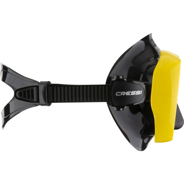 The A1 has been designed with eye-catching styling and boasts high performance for scuba and free diving. It features a single tempered glass lens with a special treatment that makes it completely anti-fog! The lenses are angled and have an inverted teardrop shape, increasing downward visibility. This allows for better control of the diving equipment. The skirt and strap are made of soft silicone that ensures a high degree of adaptability to most face shapes. The upper part of the inner skirt has a double rim that dramatically increases the hold. The buckles are connected to the frame with a soft, elastic tongue, not only for a flexible fit but also to reduce resistance and the risk of breakage.