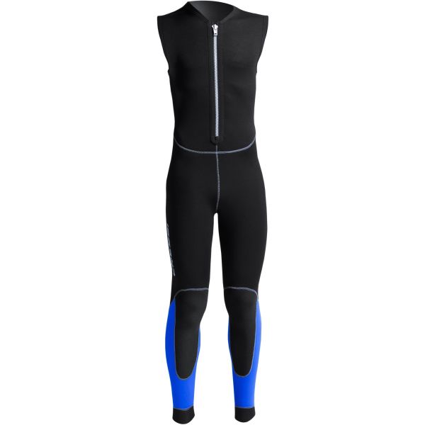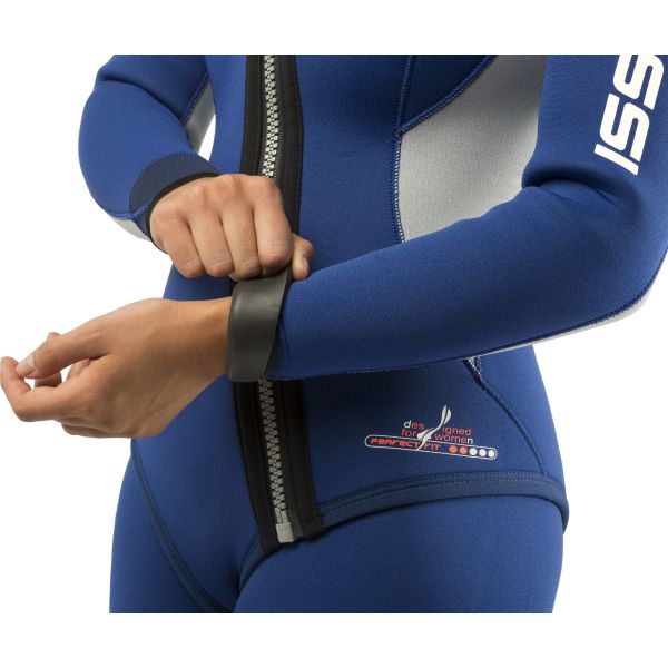Designed with Italian pattern-making expertise, the anatomically shaped panels and pre-formed arms and legs mirror the body’s natural posture, providing exceptional comfort and a true-to-size fit. A seam-free underarm prevents chafing during movement. The male version is available in black and blue and has a diagonally ziped jacket that is secured in place with a buttoned crotch closure. The female version features a black and turquoise colourway and has a swimsuit-style jacket with a diagonal zip closure.