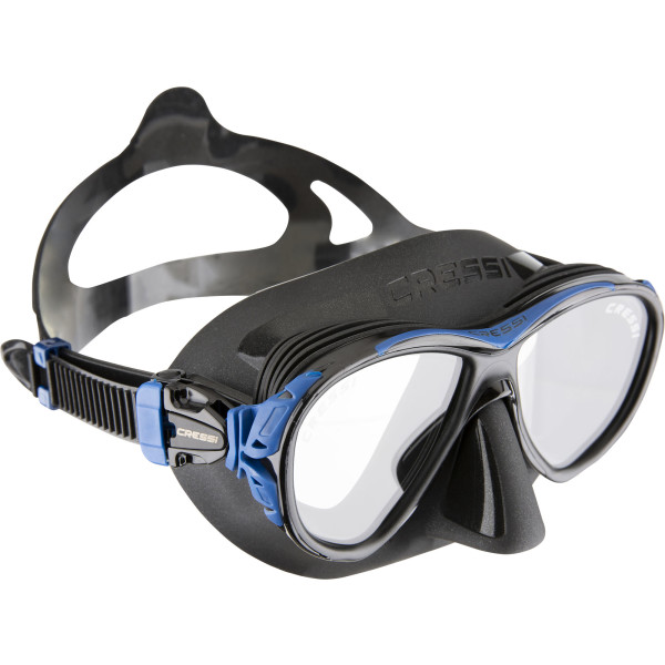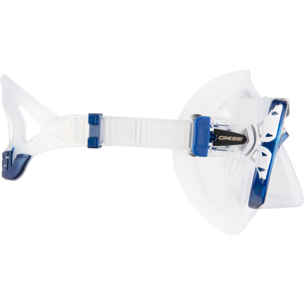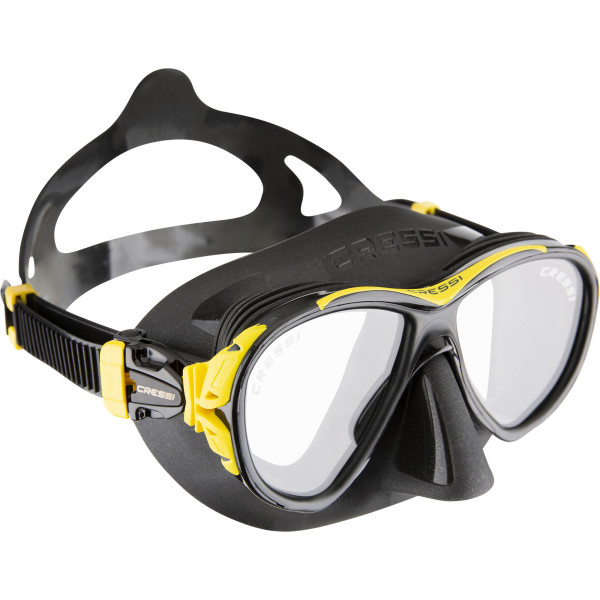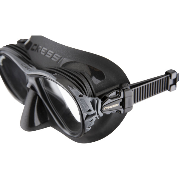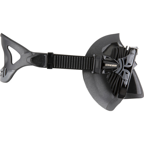 The Naxos mask is compact and smaller than a classic dive mask, but this unique feature does not reduce the field of vision, and thanks to new internal ribs, it adapts perfectly to any anatomy of the face. Naxos, like Quantum, not only offers increased downward vision but also avoids the phenomenon of fogging by thermoregulating the warm, moist air that escapes through the nose inside the mask. This is channelled by a system of membranes in the mould around the eyes and nose, which deflect the flow towards the rubber walls and not towards the glass. On the outside of the walls is a cooling system consisting of two small heat exchangers that function like radiators. The effect is that the temperature inside the mask is lowered, bringing it closer to the outside temperature, and that moisture droplets are trapped before the air reaches the glasses, thus preventing them from fogging up.