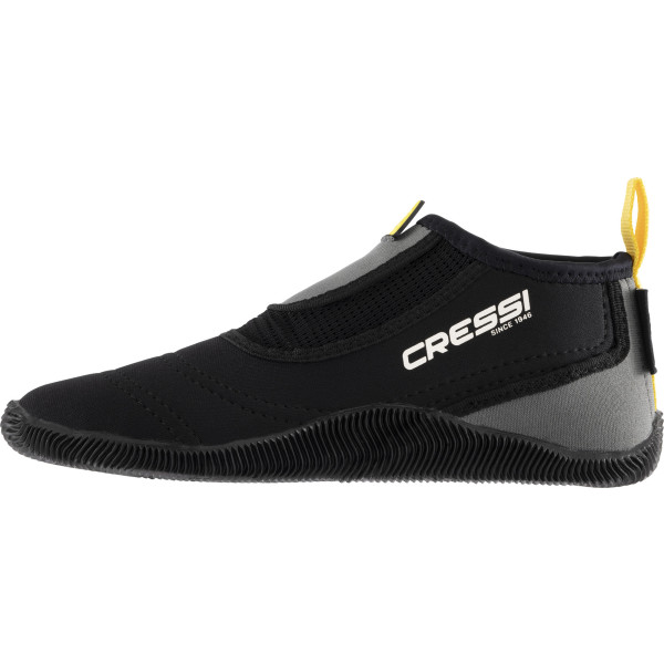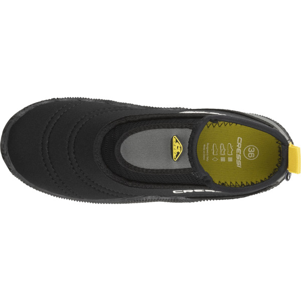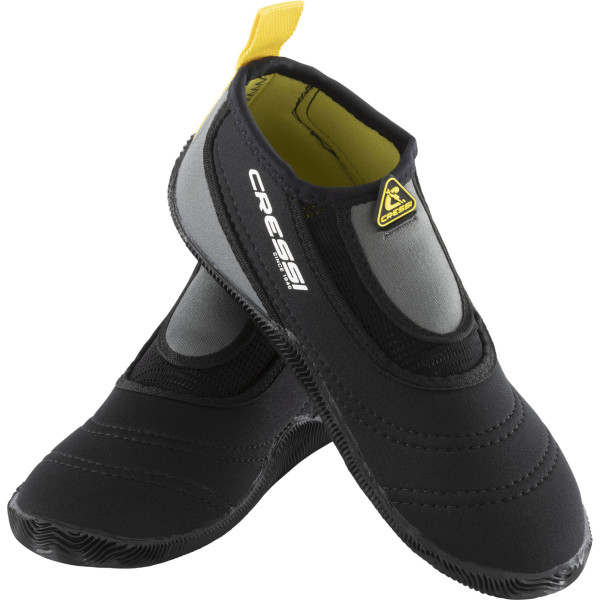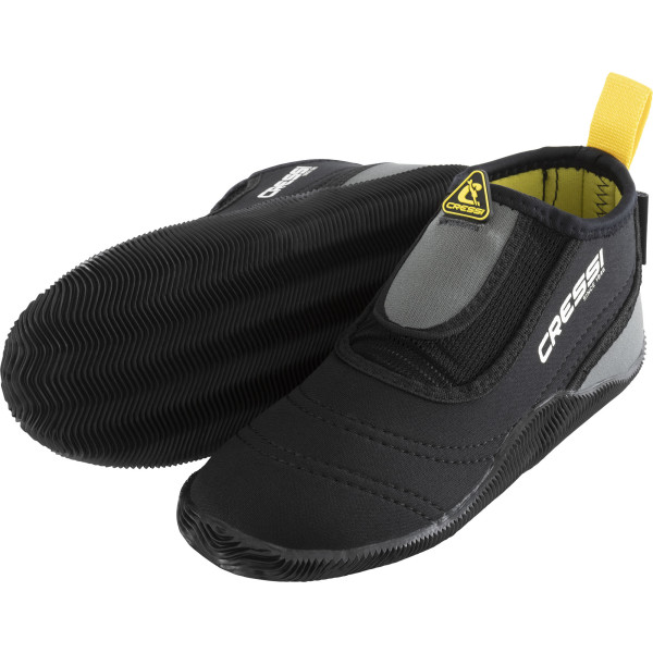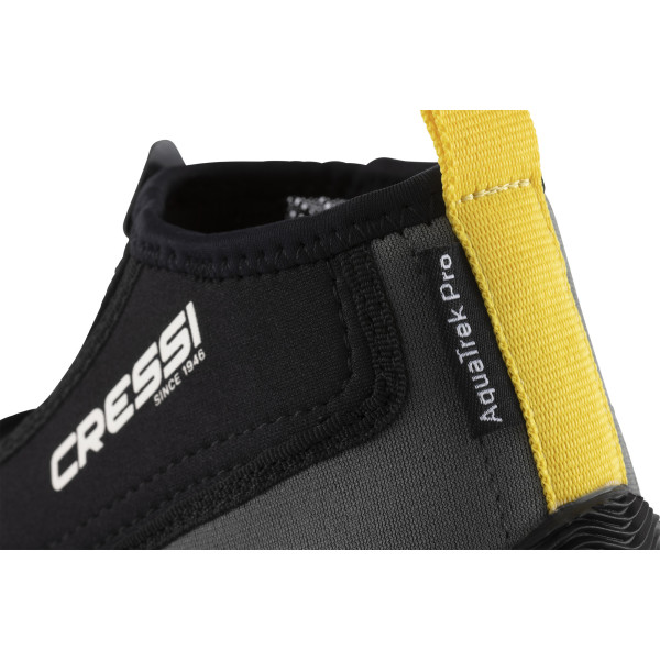 The AquaTrek Pro is a comfortable water shoe engineered for marine environments. Its specialized anti-slip sole ensures stability on various surfaces. The neoprene upper, combined with nylon mesh, facilitates easy slip-on compared to traditional neoprene shoes. Designed for versatility, it transitions seamlessly between water and land activities. Whether walking on rocky shores or sandy beaches, the AquaTrek Pro provides reliable traction and protection. Its lightweight construction and breathable materials enhance comfort during prolonged wear. The practical double puller allows the shoe to be easily slipped on.