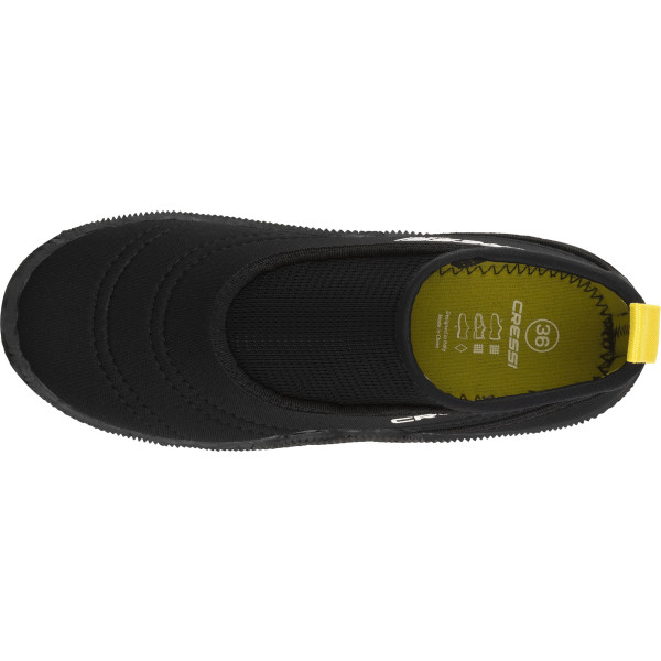 The AquaTrek is a comfortable water shoe engineered for marine environments. Its specialized anti-slip sole ensures stability on various surfaces. The neoprene upper, combined with nylon mesh, facilitates easy slip-on compared to traditional neoprene shoes. Designed for versatility, it transitions seamlessly between water and land activities. Whether walking on rocky shores or sandy beaches, the AquaTrek provides reliable traction and protection. Its lightweight construction and breathable materials enhance comfort during prolonged wear.