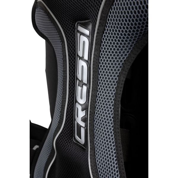 The back plate cover and shoulder strap lining are made from Cressi’s proprietary Air-Net material, a padded fabric that is quick-drying, neutrally buoyant and comfortable.
