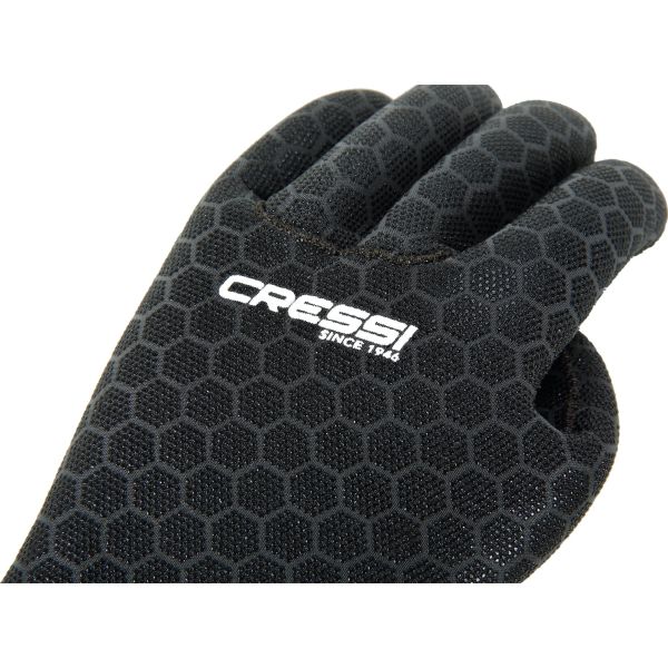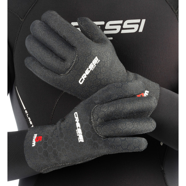 5-finger gloves made from single-lined soft, highstretch neoprene. The inside is covered in metallite to make them easy to put on. The preformed shape favours the natural position of the hand, with semi-bent fingers. The entire surface is covered with a non-slip finish for a sure grip in all situations