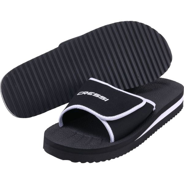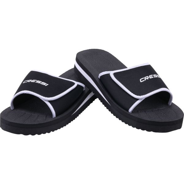 Cressi shoes panarea are comfortable slip-on sandals for the beach or the pool with a preformed anatomic sole made in a special anallergic rubbery material that is long-lasting. Convenient adjustable strap closure for a perfect grip on your foot. Cressi logo imprinted on the upper side
