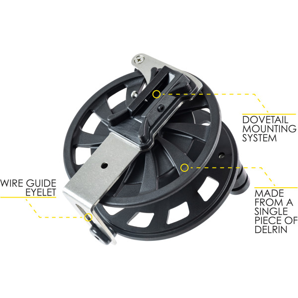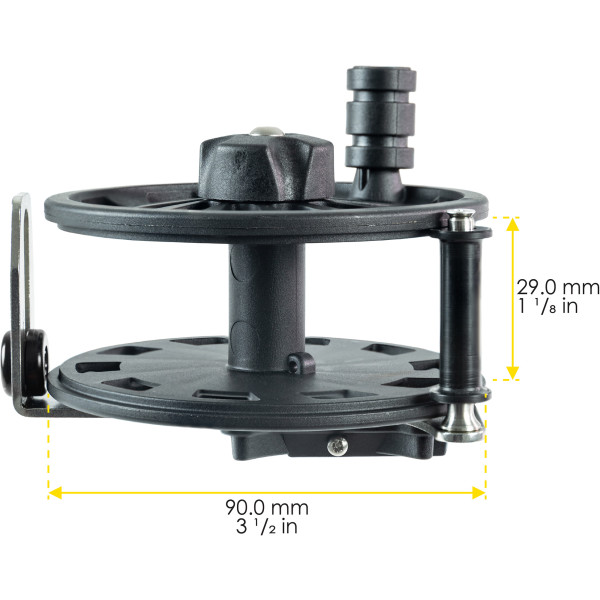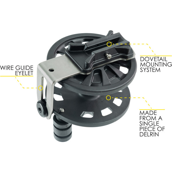 The frame and the central pin are in aisi 316 steel. The drilling on the frame itself allows it to be used also on arbalete spearguns of different brands. The special clutch provides an excellent closing torque. The assembly system allows easy maintenance and cleaning. All sizes are equipped with a rewinder ring and size r50 is also equipped with an antiblocking roller. The models r30 and r50 are equipped with a lightened drum in order to weigh as little as possible on the balance of the speargun